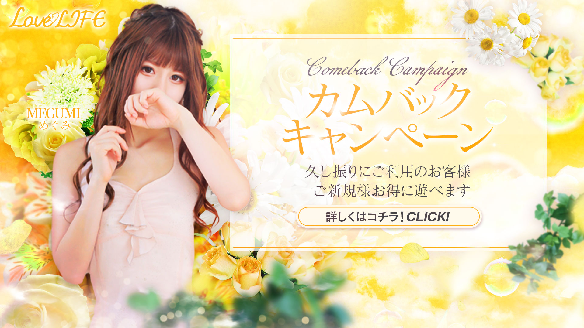 1ヶ月以上ご無沙汰のお客様、3ヶ月以上ご無沙汰のお客様、そしてもちろん常連のお客様にもお安く遊んでいただけます!